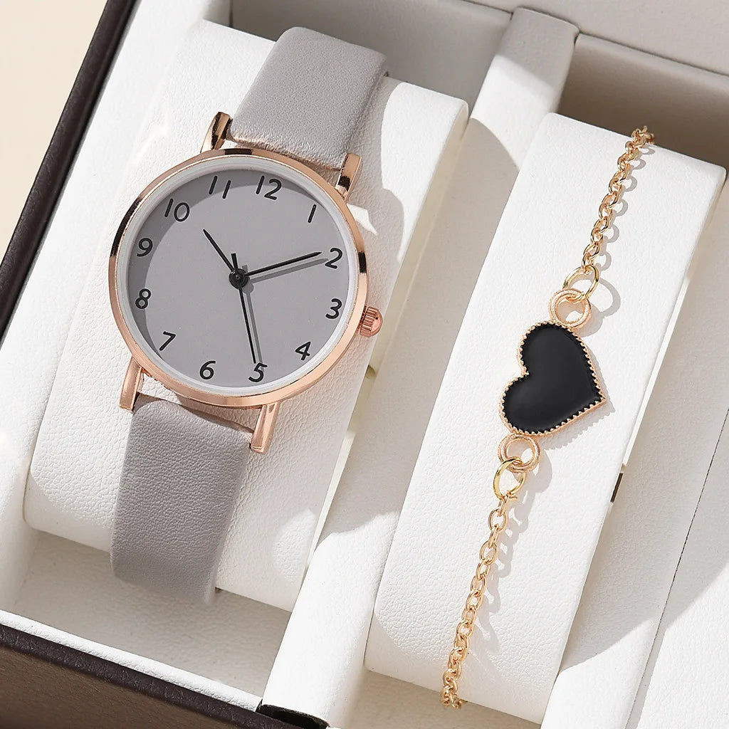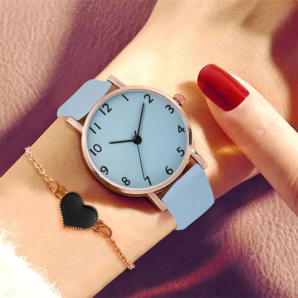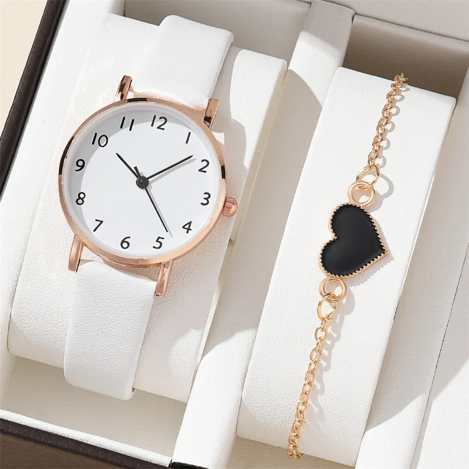 2pcs 2024 New Watch Women Fashion Casual Leather Belt Watches Simple Ladies Round Dial Quartz Wristwatches Reloj Mujer