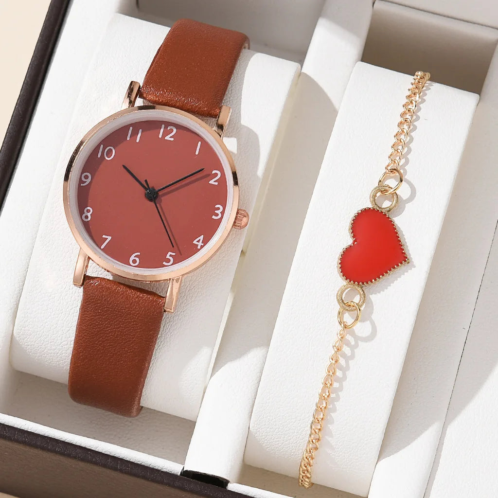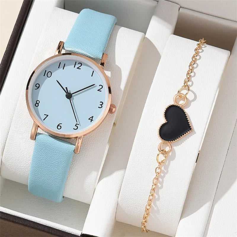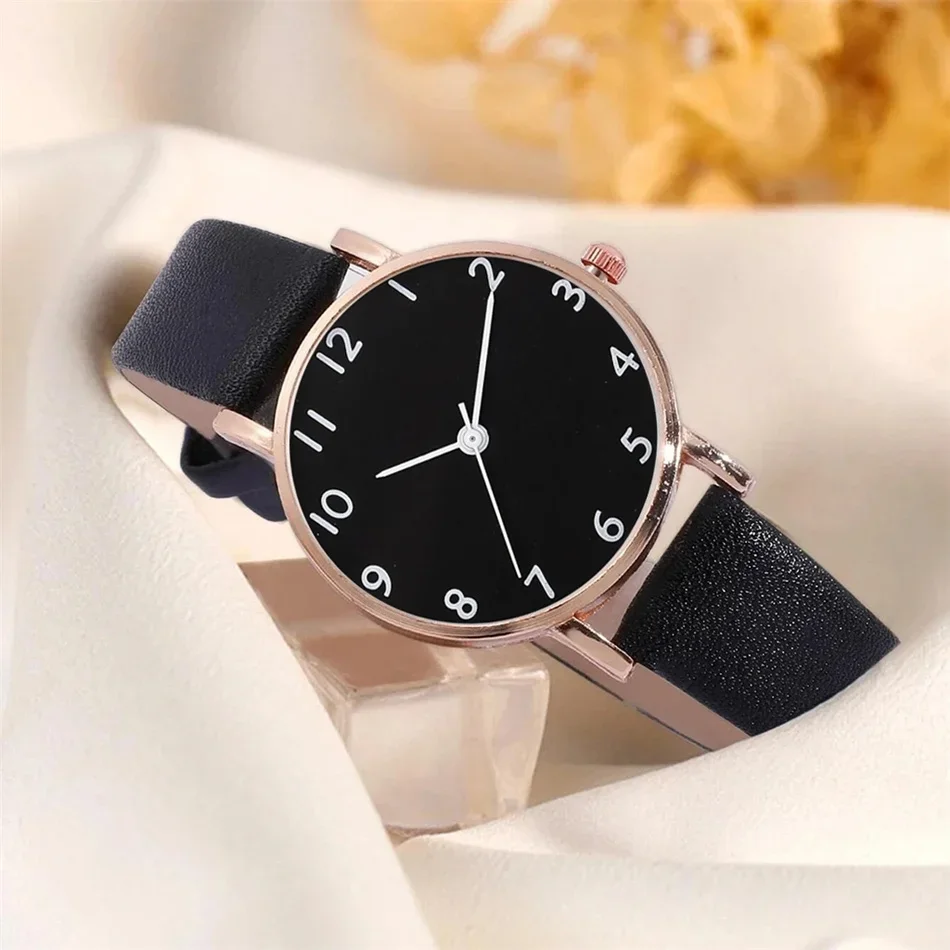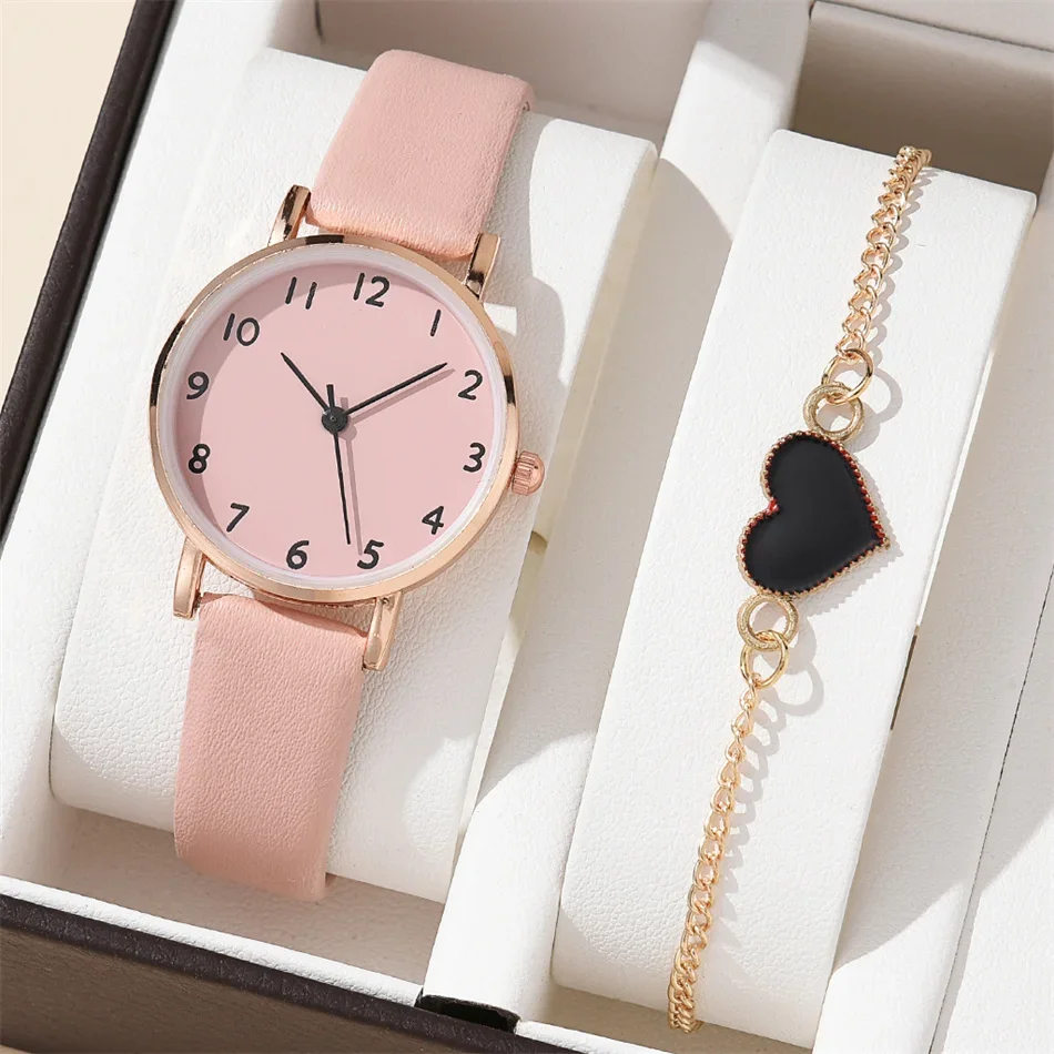 2pcs 2024 New Watch Women Fashion Casual Leather Belt Watches Simple Ladies Round Dial Quartz Wristwatches Reloj Mujer