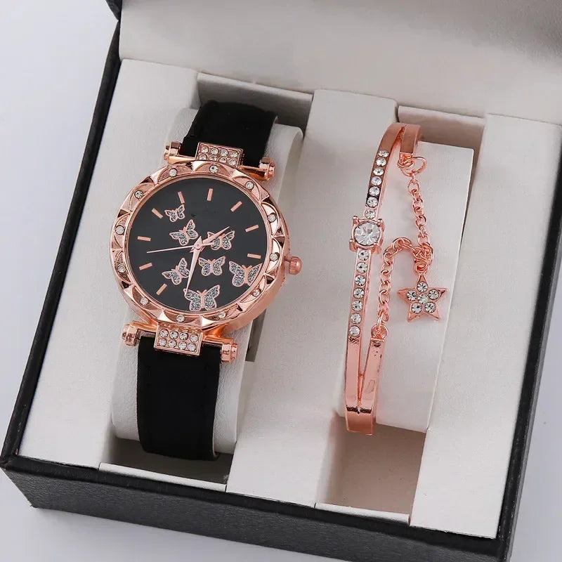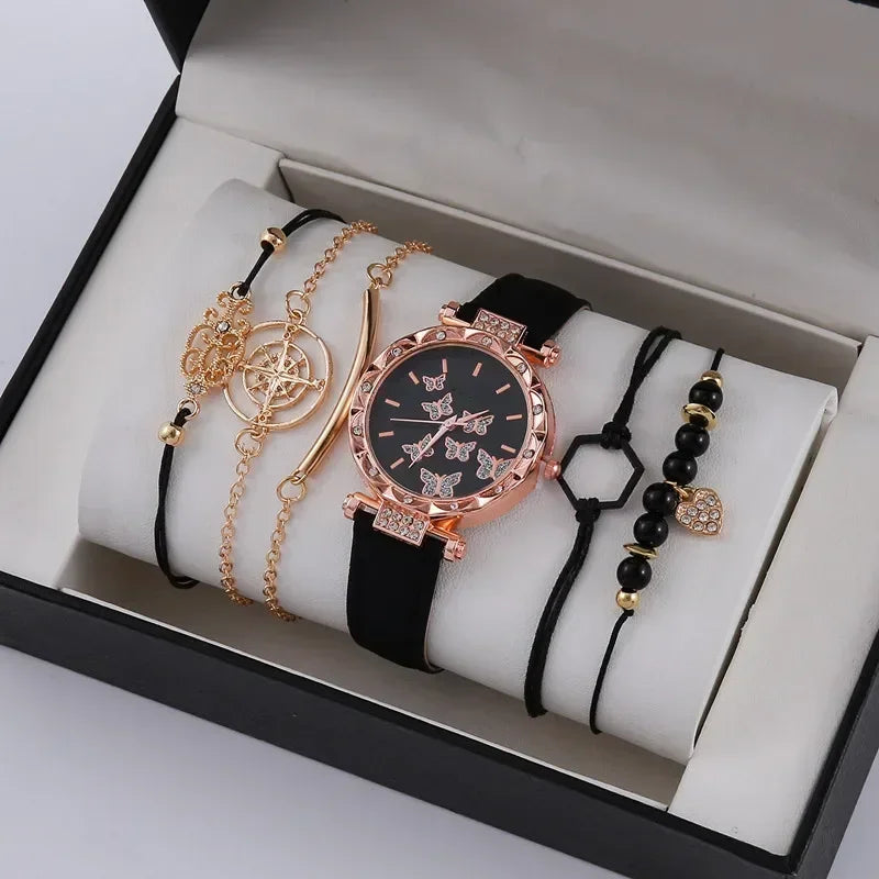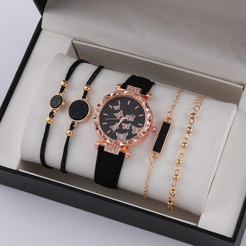 6/5/2/1PCS Set Women's Watch Casual Flower Quartz Watch Analog PU Leather Wrist Watch & Bracelets reloj mujer Elegante NO BOX