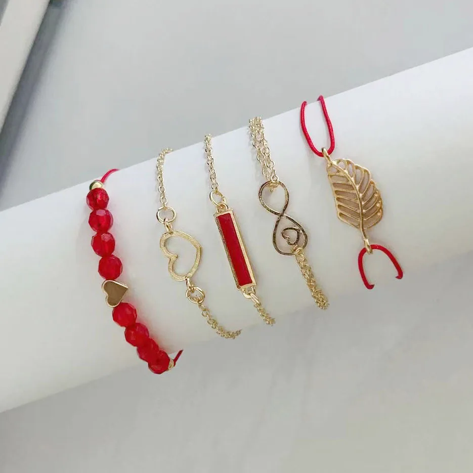 6PCS/Set Women's Watch Fashion Roma Heart Dial Leather Band Quartz Watches Leaf Bracelets Set(Without Box)