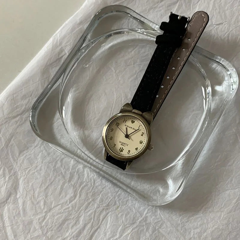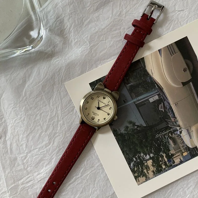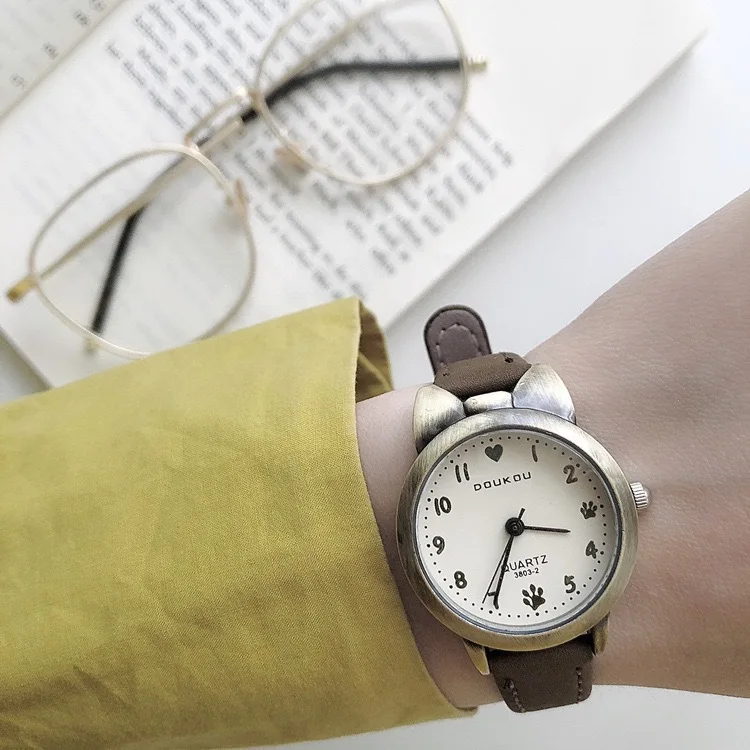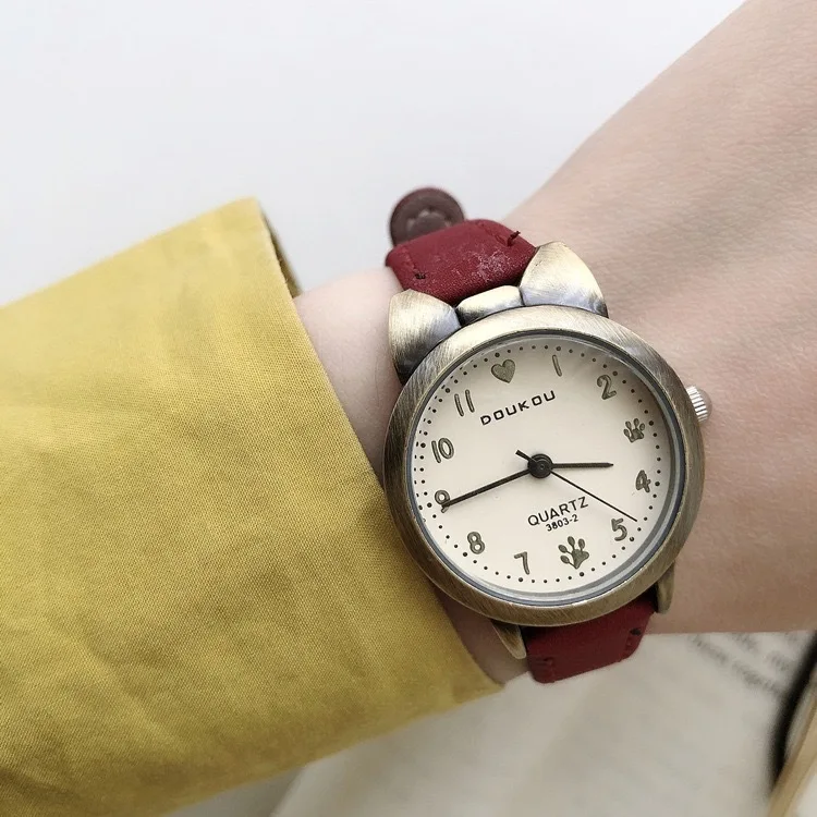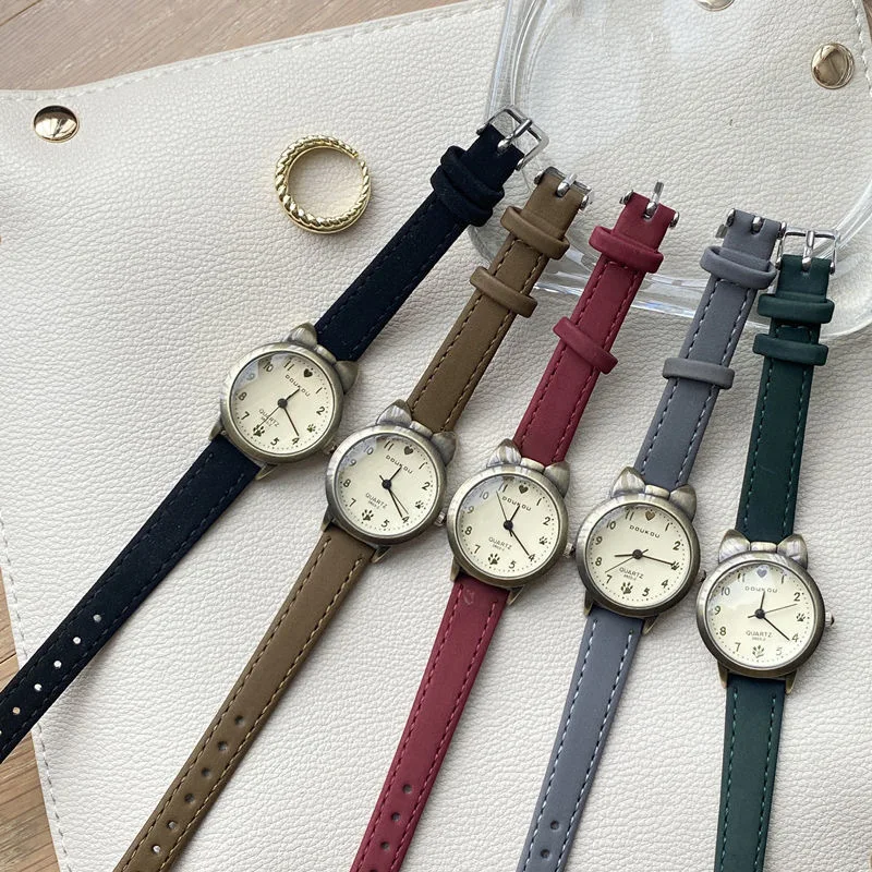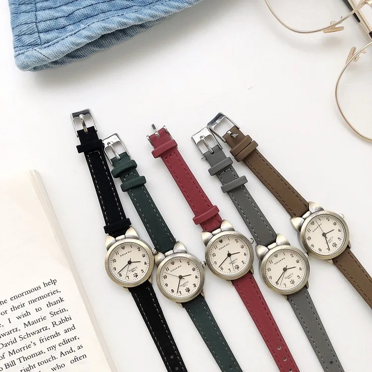 Cute Cat Ears Kids Children Watch Casual Women Quartz Wristwatch Pu Leather Watches For Women Clock Reloj Mujer Montre Femme