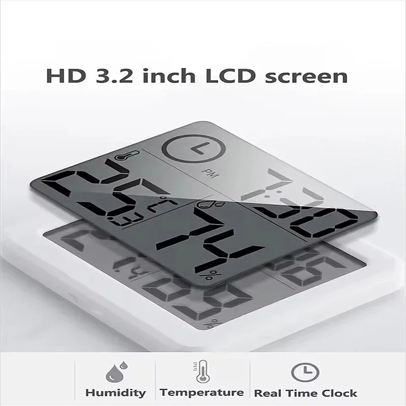 Digital Desk Wall Clock Temperature Humidity 3.2inch LCD Digital Display Operated clock Home Kitchen Office Desk Decorations