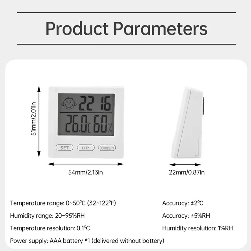 Digital Temperature Humidity Meter Multi-function Clock Thermometer Hydrometer Meter 0~50℃(32~122℉) 20~95%RH