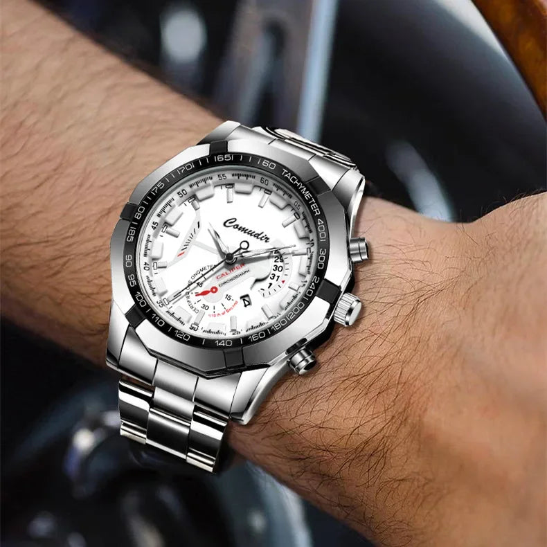 Fashion Luxury Mens Watches Automatic Movement Hollow Out Business Calendar Wristwatch Casual Stainless Steel Watches