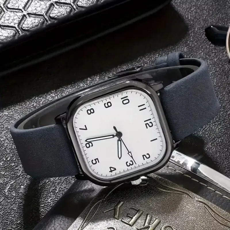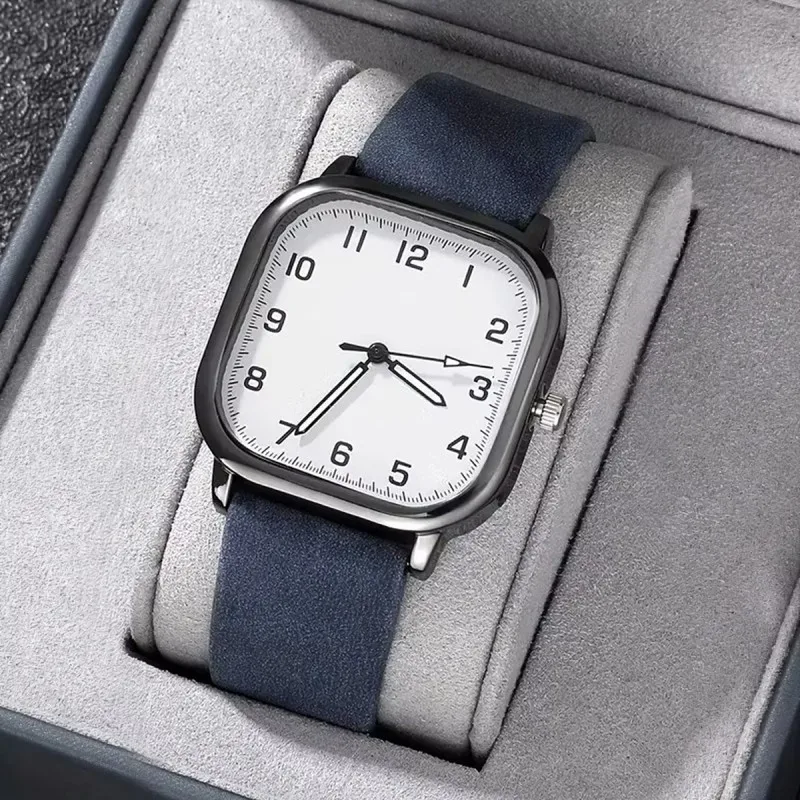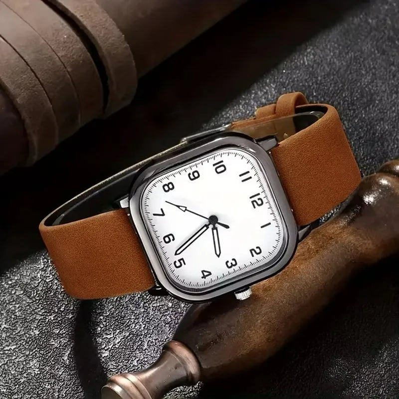 Fashion Men Watches Casual Square Quartz Watch Leather Strap Wristwatch for Men Reloj Hombre(Without Box)