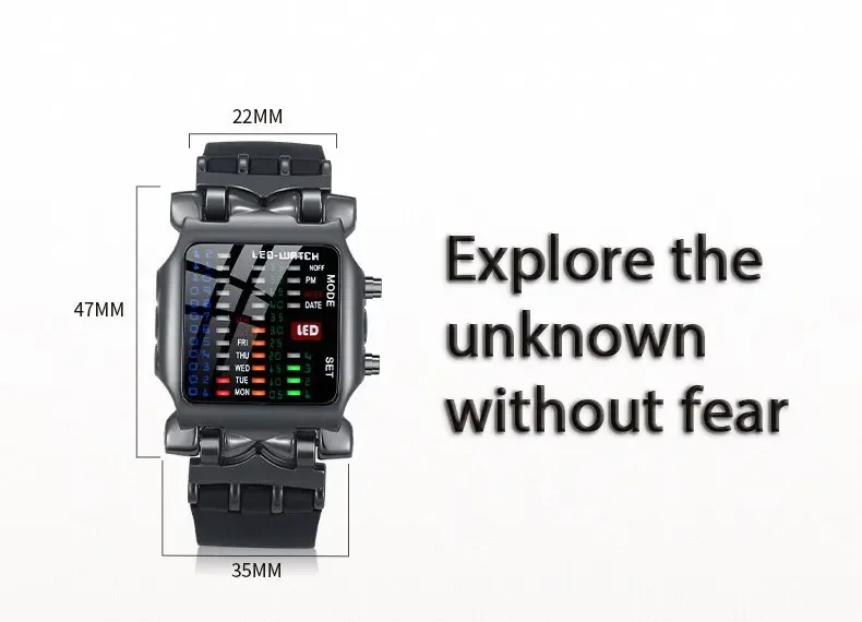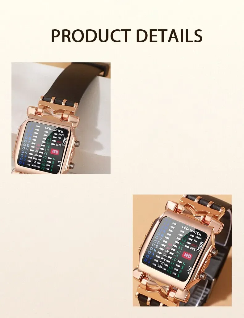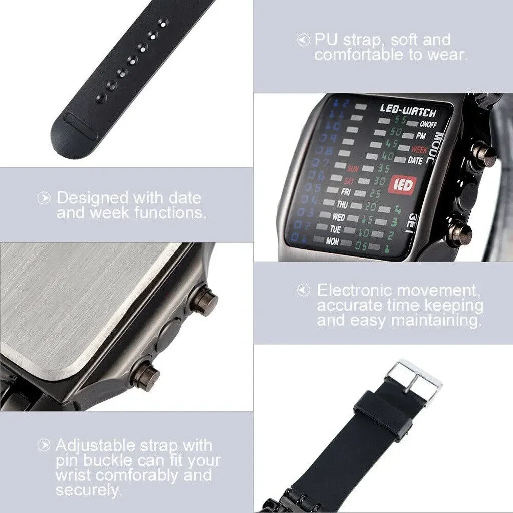 LED Watch Men Fashion Creative Crab Type Electronic Watch Luminous Binary Gift Business Style Cool Waterproof Multi Function