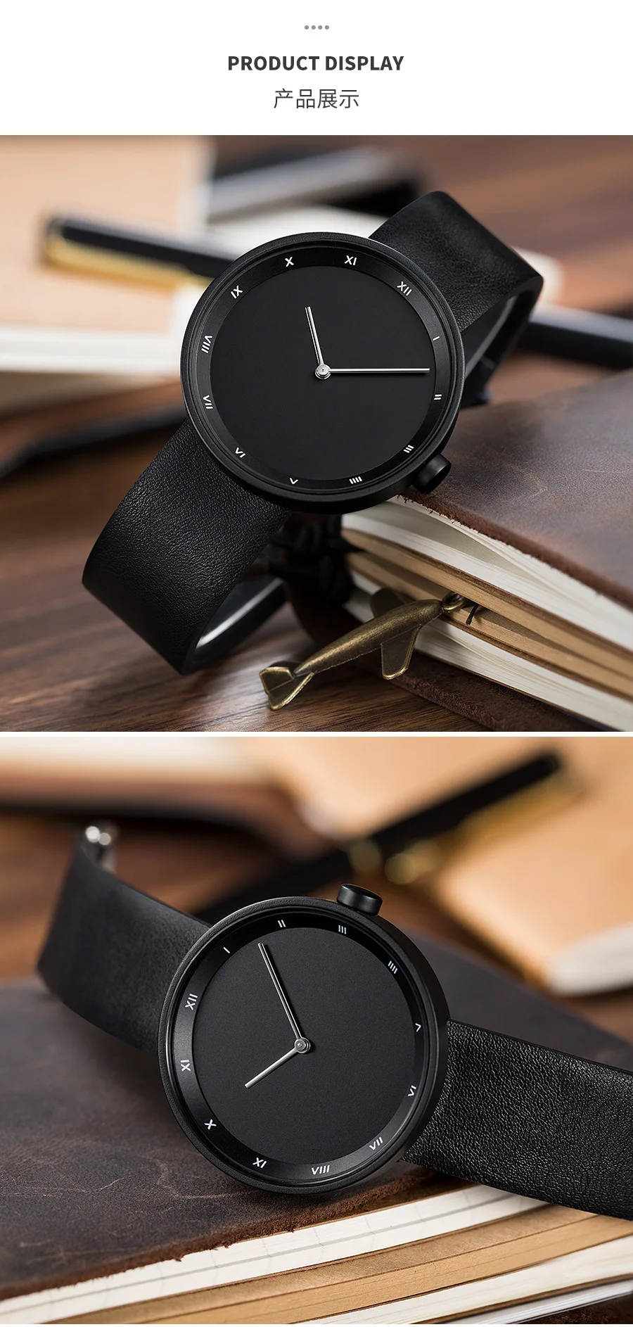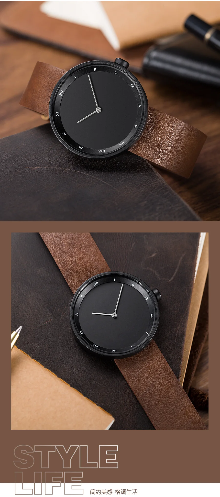 Mens Minimalist Style Simple Quartz Wristwatches PU Strap Casual Fashion Round Watch In Daily Sport Watches Relogios Masculino