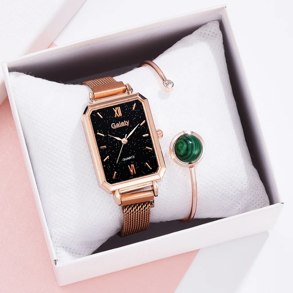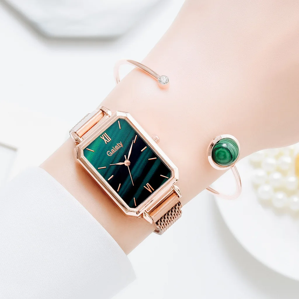 New Women Watch Luxury Bracelet Set Fashion Square Ladies Quartz Watch Magnetic Strap Watches for Women Gift Set Relogio Mujeres